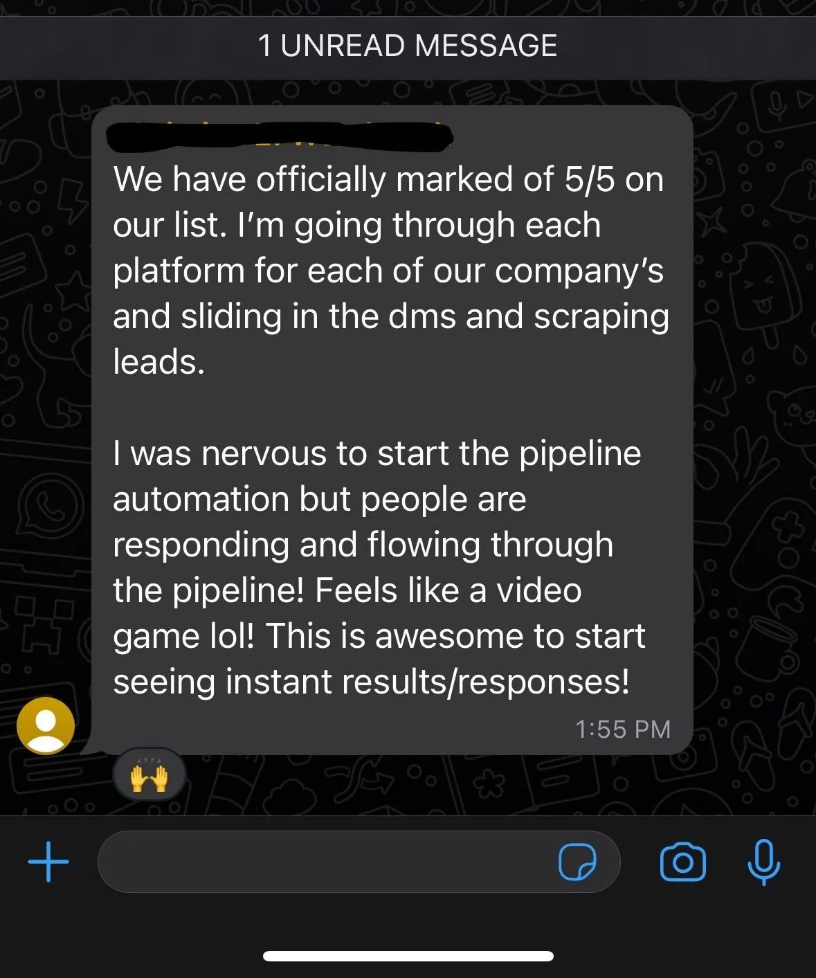 And you don't have any leads because you're spending your time on menial tasks that a hamster on a wheel is more qualified to do.